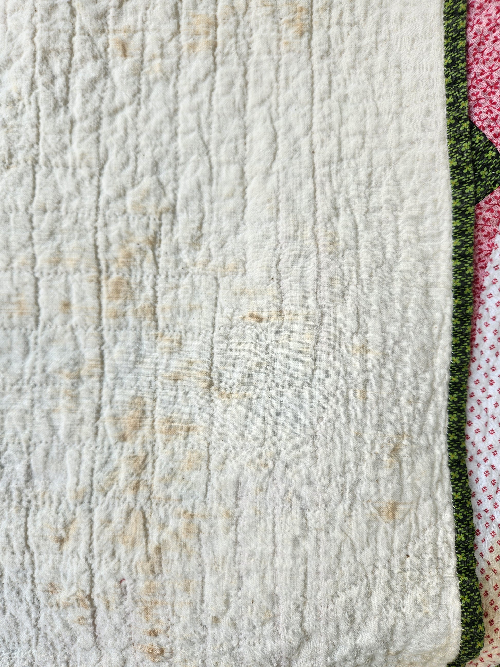 This is freshly washed and very soft with a GREAT, classic, quilt crinkle. The backing is soft white with a few scattered marks.