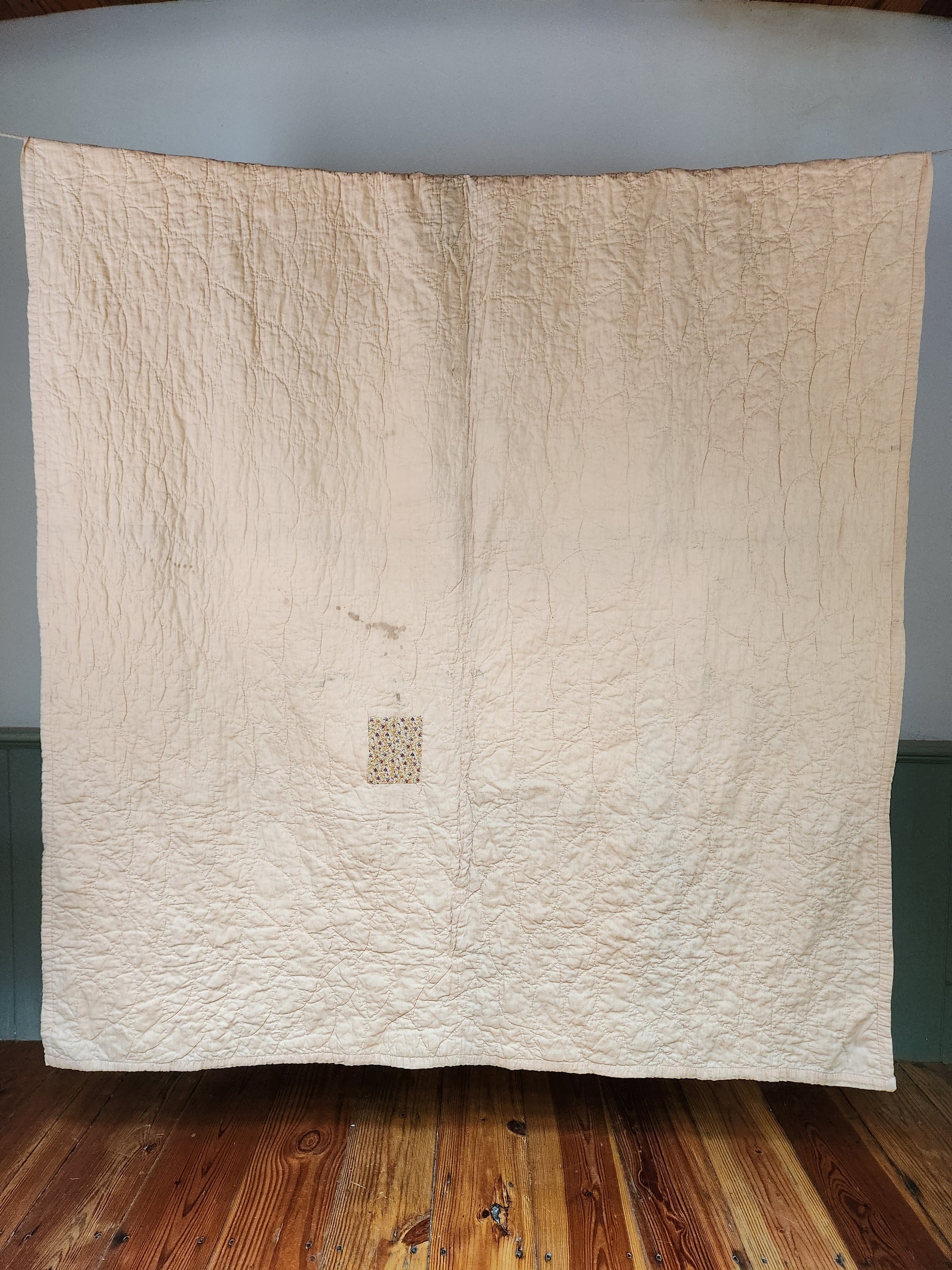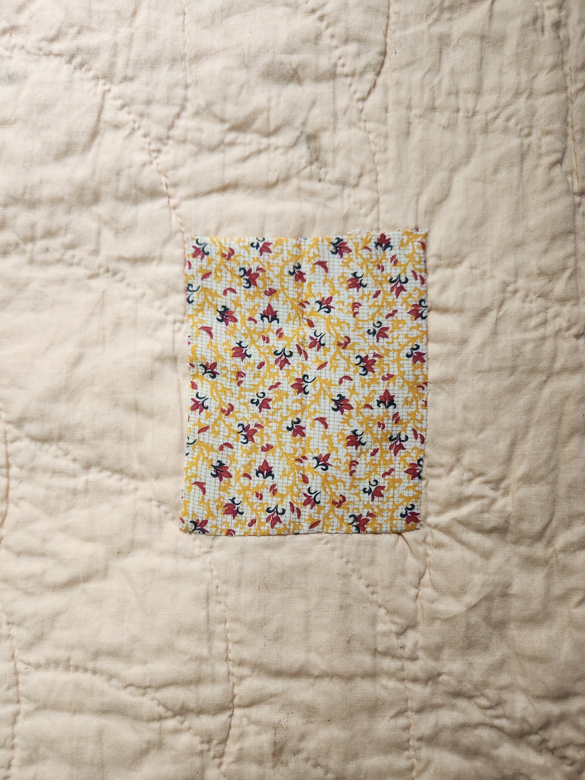 Condition: Freshly washed. Fair condition. Residual marks, some fade to orange, and two hand mends, front and back.