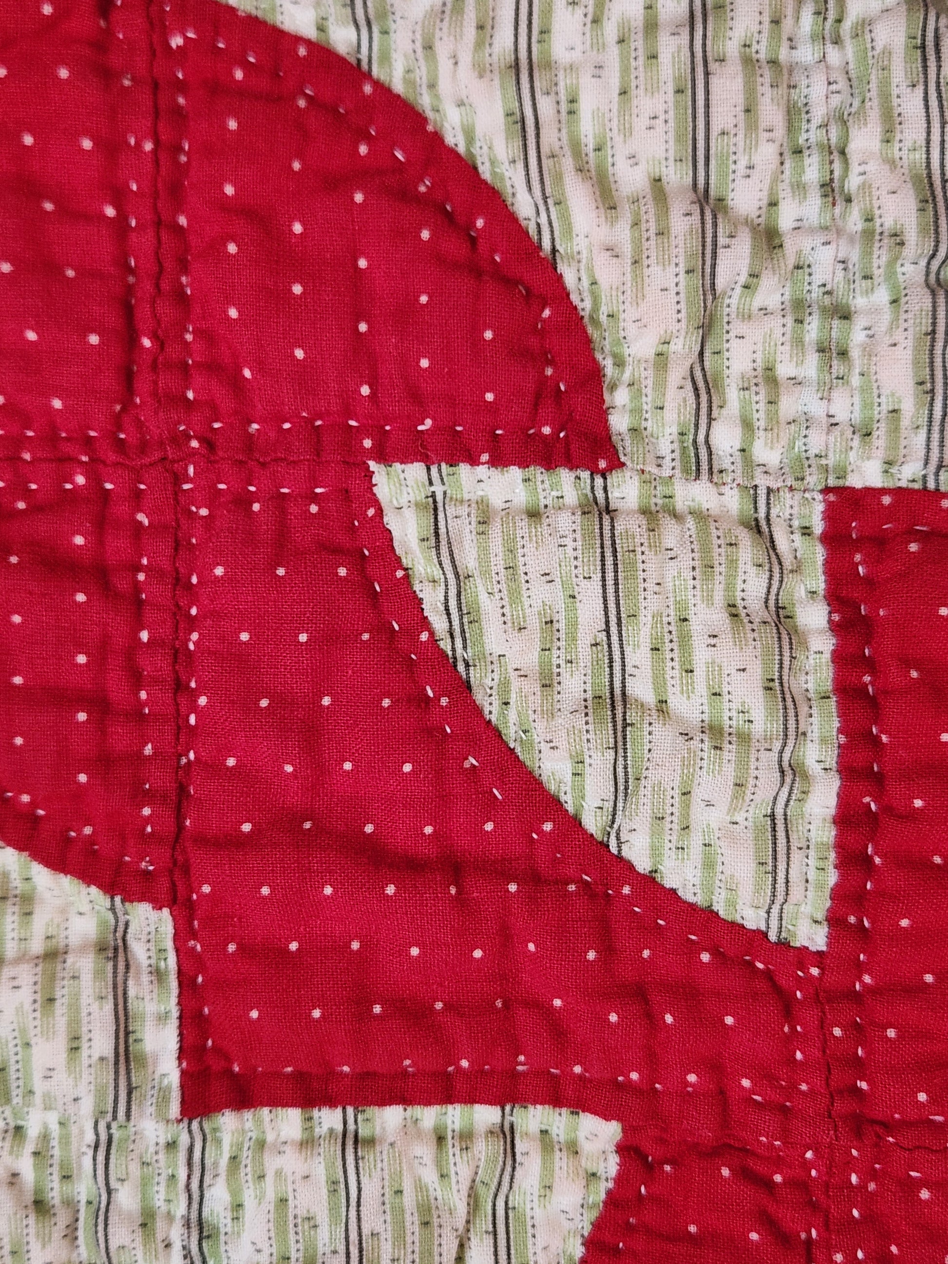 Antique Red & Green Drunkard's Path Quilt ca 1900