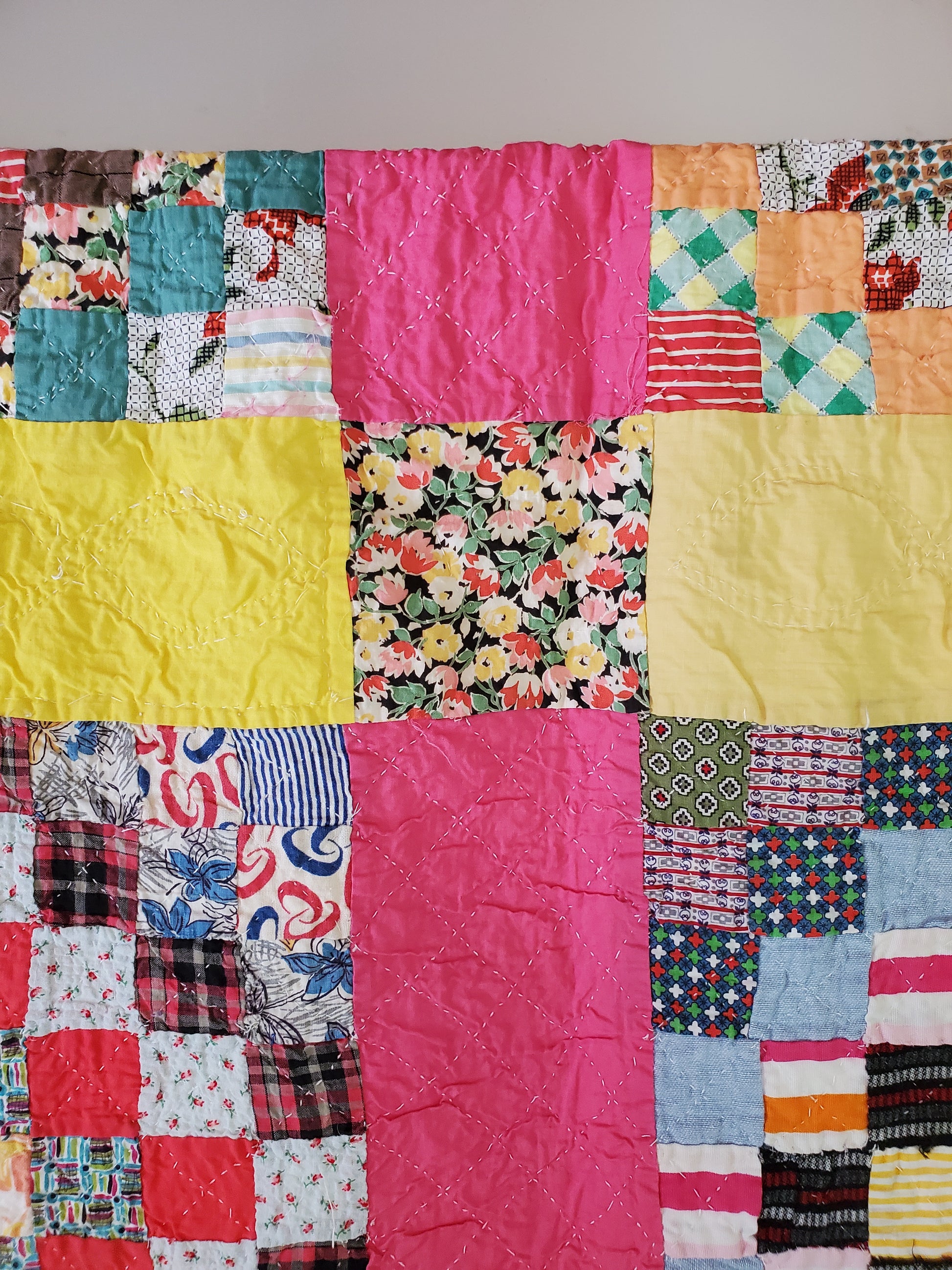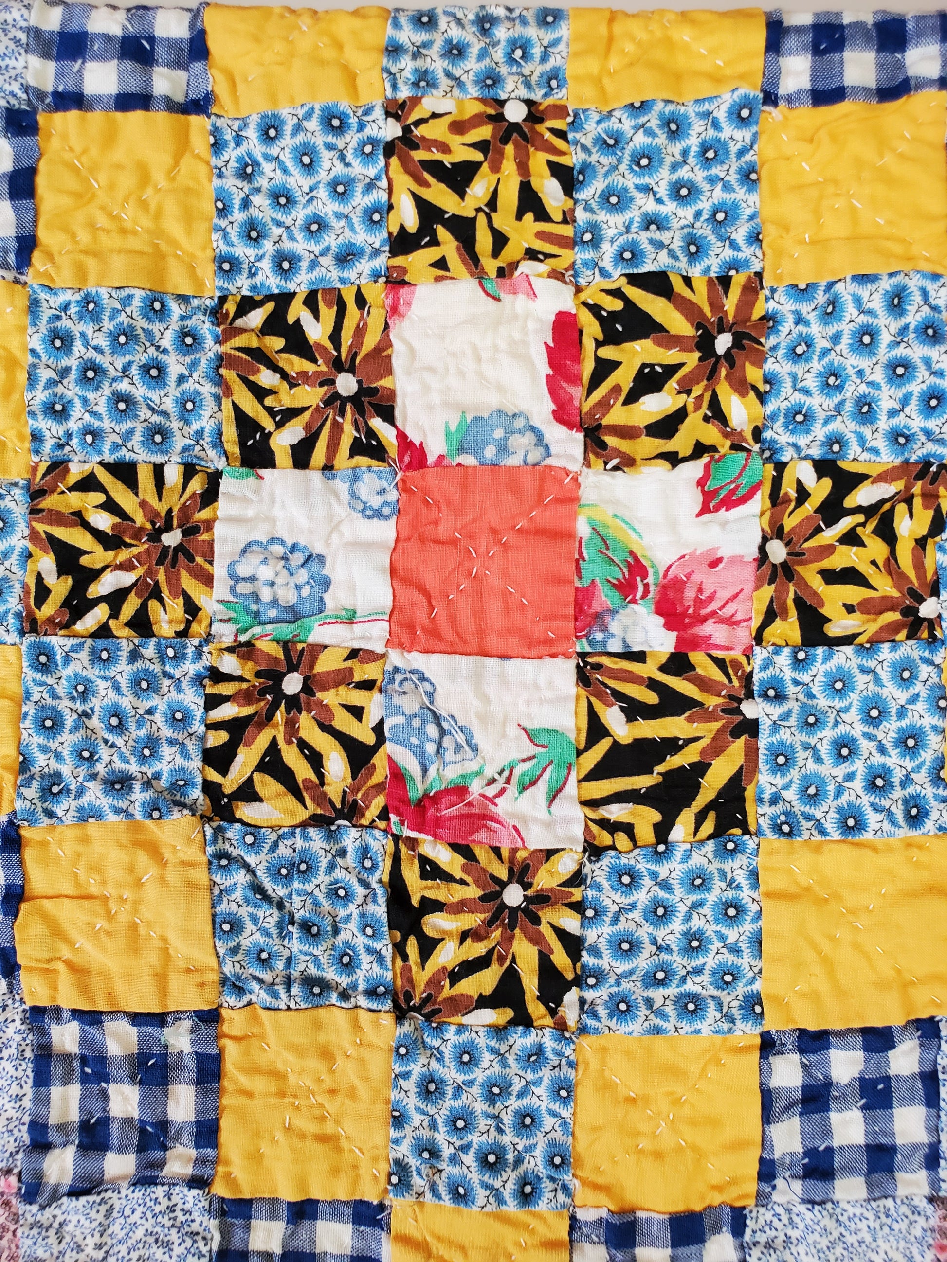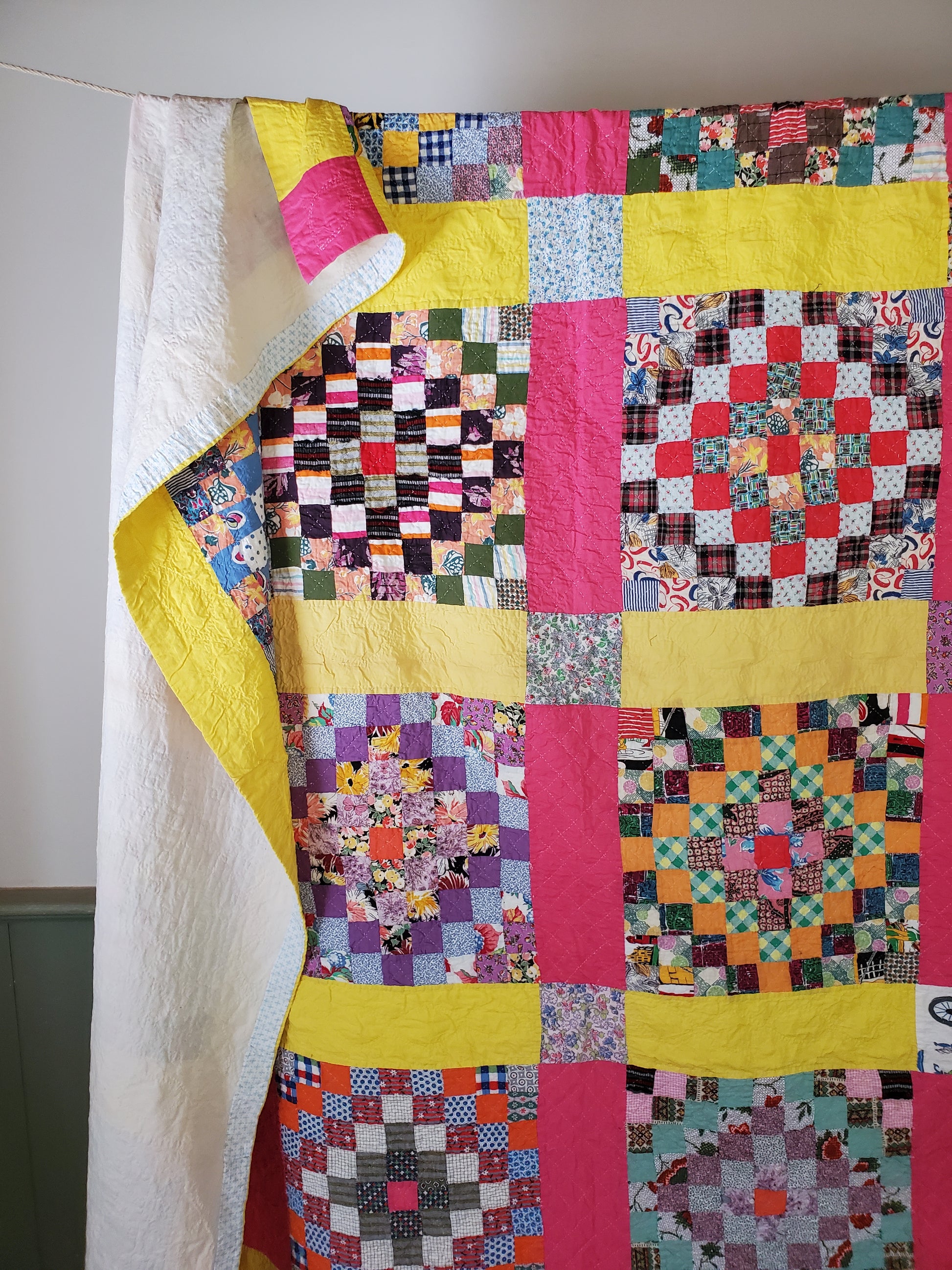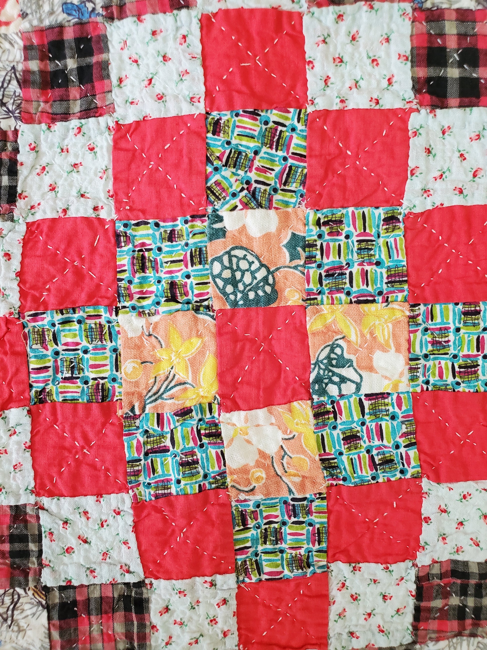 The condition is beautiful, there are many feed sack prints and retro fabrics used and the effect is playful and electric.